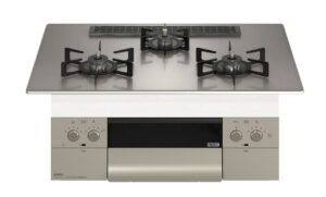 ガラストップにステンレスごとくでスタイリッシュなデザインのコンロです。