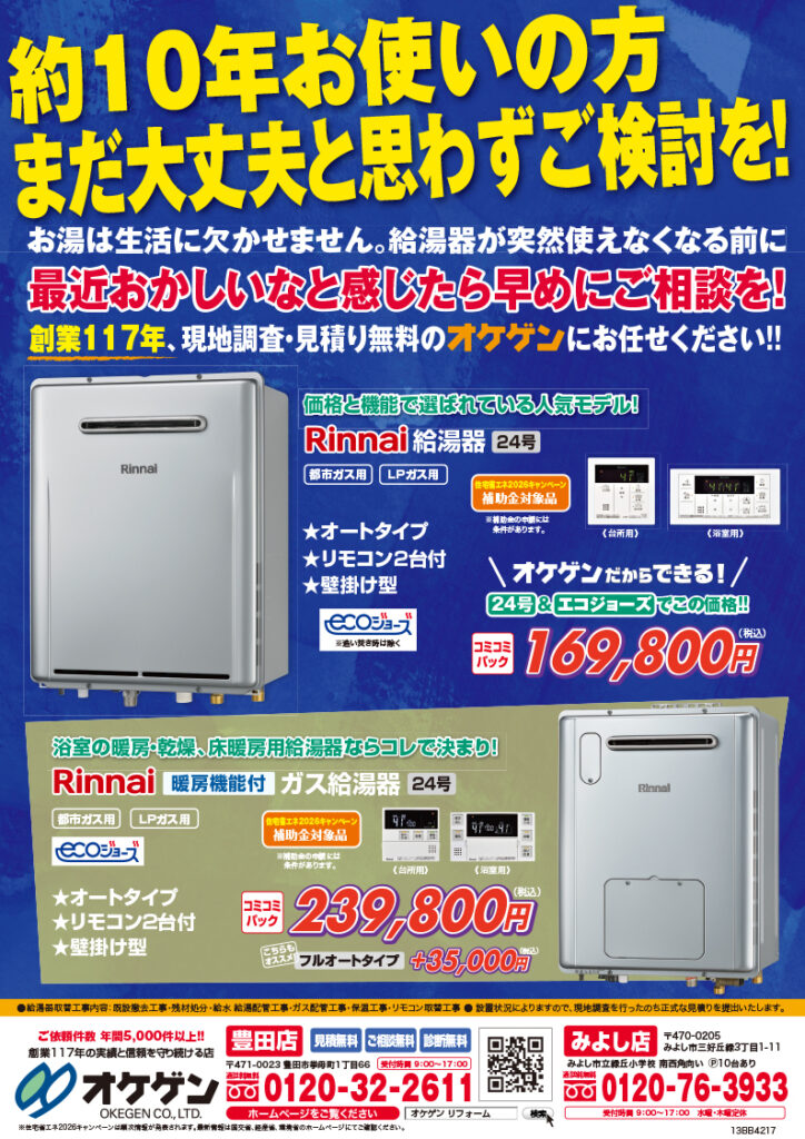 ご家庭の給湯器は大丈夫ですか? おすすめの給湯器チラシのご案内