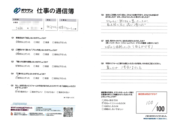 オケゲンでのリフォームありがとうございました! 以前からオケゲンをご利用いただき、とても感謝しております。 今後も、お客様のご期待を裏切らないよう努力して参ります。 これからも、どうぞよろしくお願い致します。