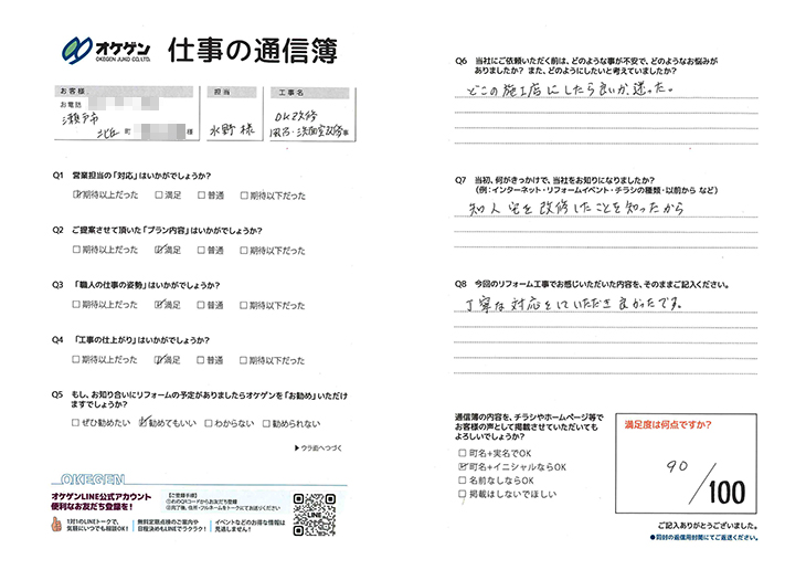 お知り合いの方からのご縁から、とても良い評価につながり安堵とともに、たいへん感謝しております。