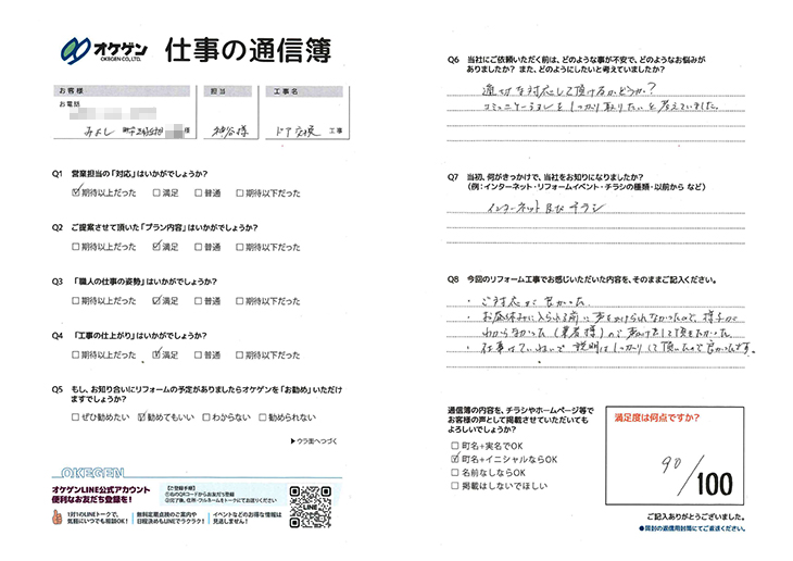 今回のリフォームでお感じいただいたことは?