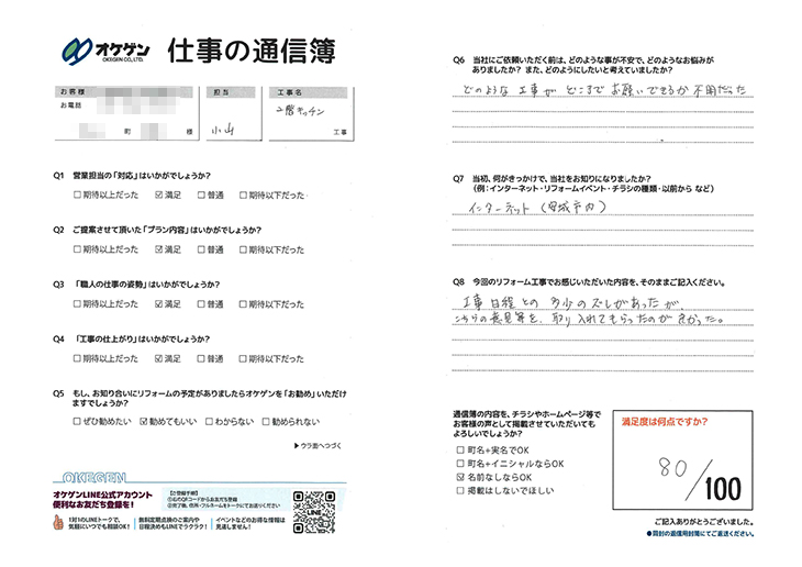 工事日程との多少のズレがあったが、こちらの意見等を取り入れてもらったのが良かった。