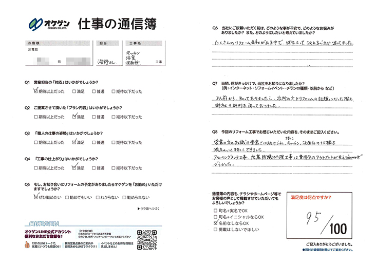 以前から知っておりましたし、近所の方とリフォームの話題になった際も、御社の評判を聞いておりました。
