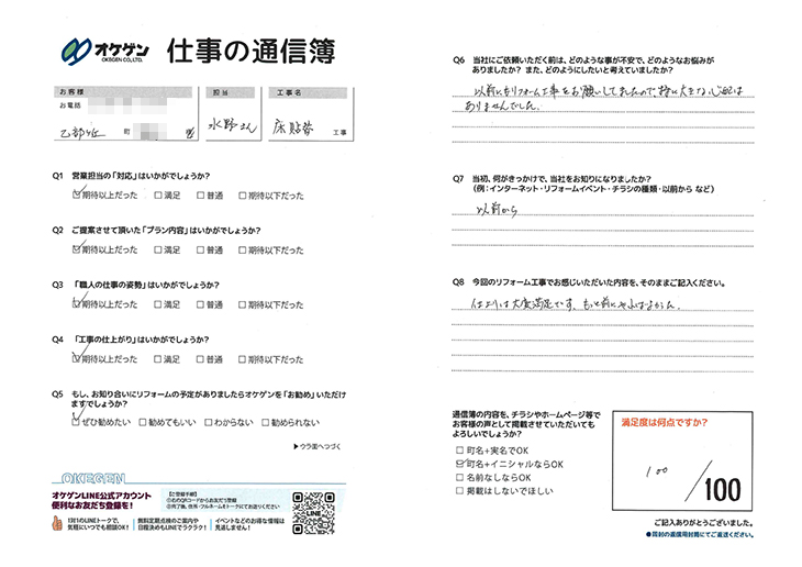 以前にもリフォーム工事をお願いしていましたので、特に大きな心配はありませんでした。
